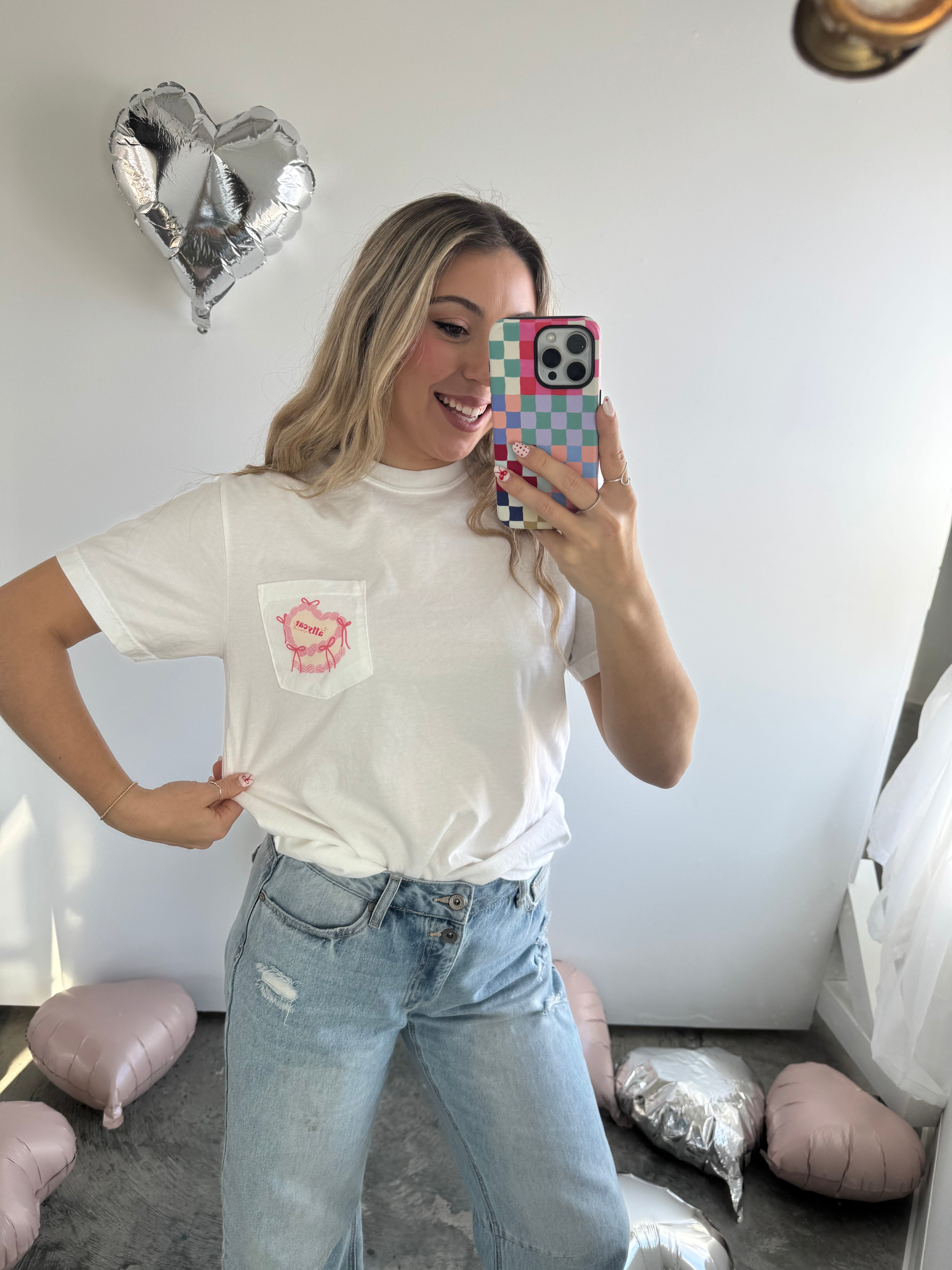 Logo Vintage Heart Cake Pocket Tee: White