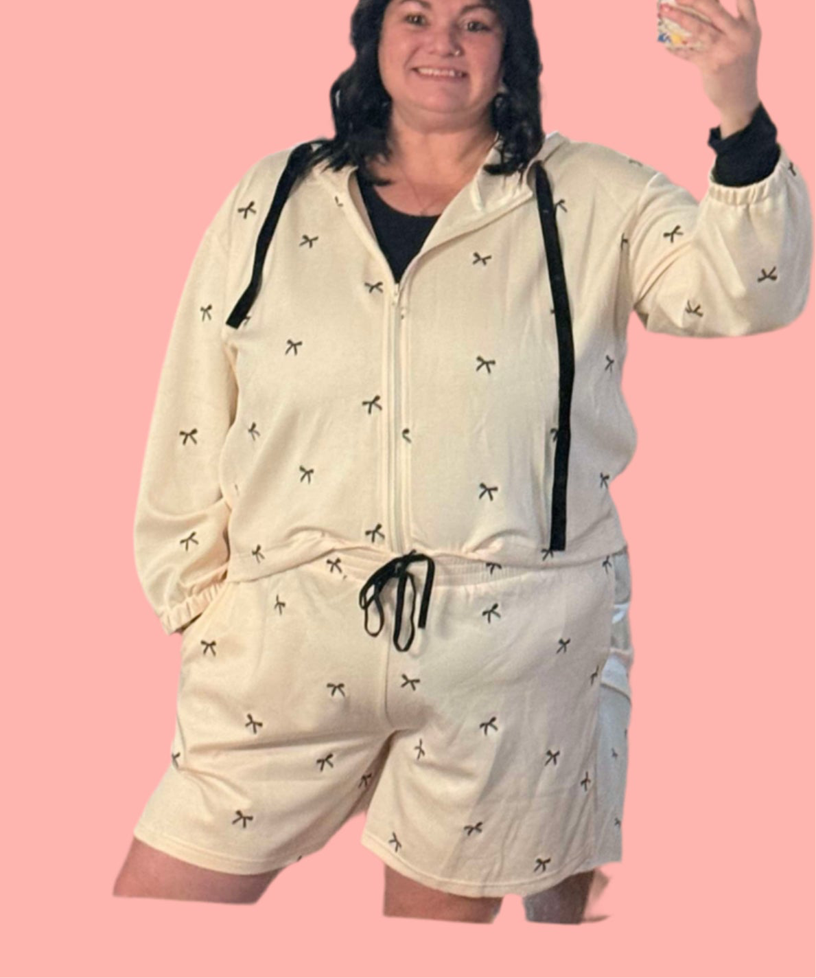 PLUS Ribbon Embroidery Elastic Waist Midi Shorts: Cream