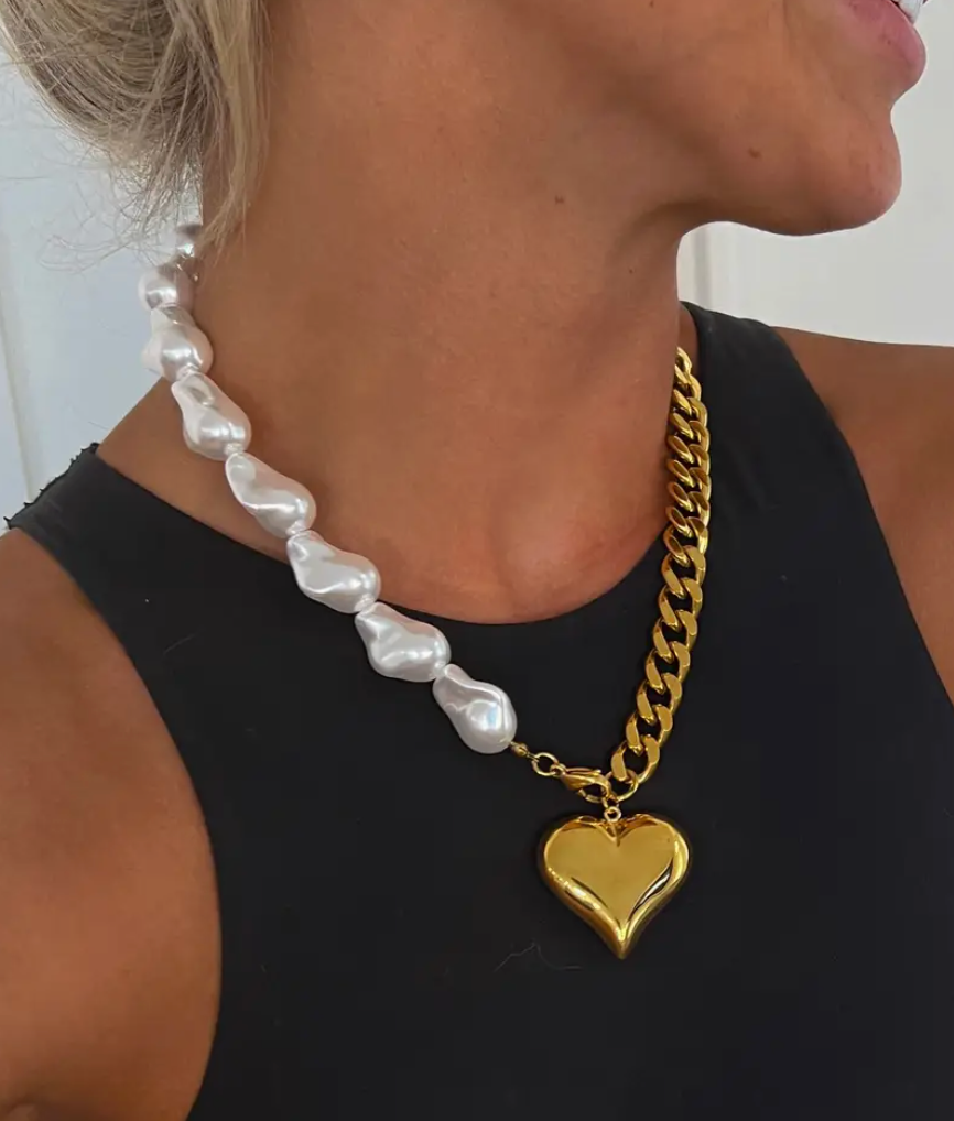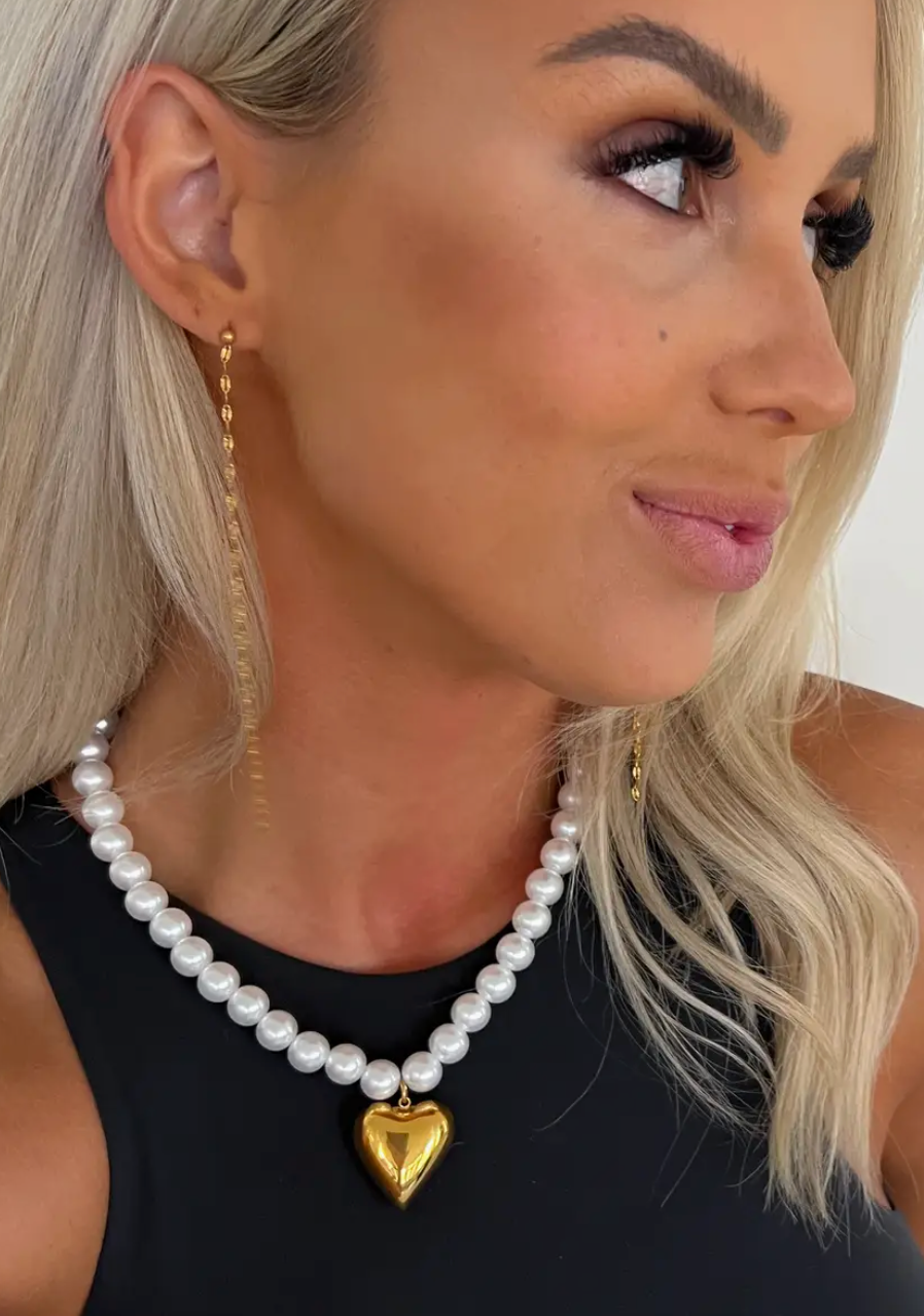 Pearl & Gold Heart Necklace