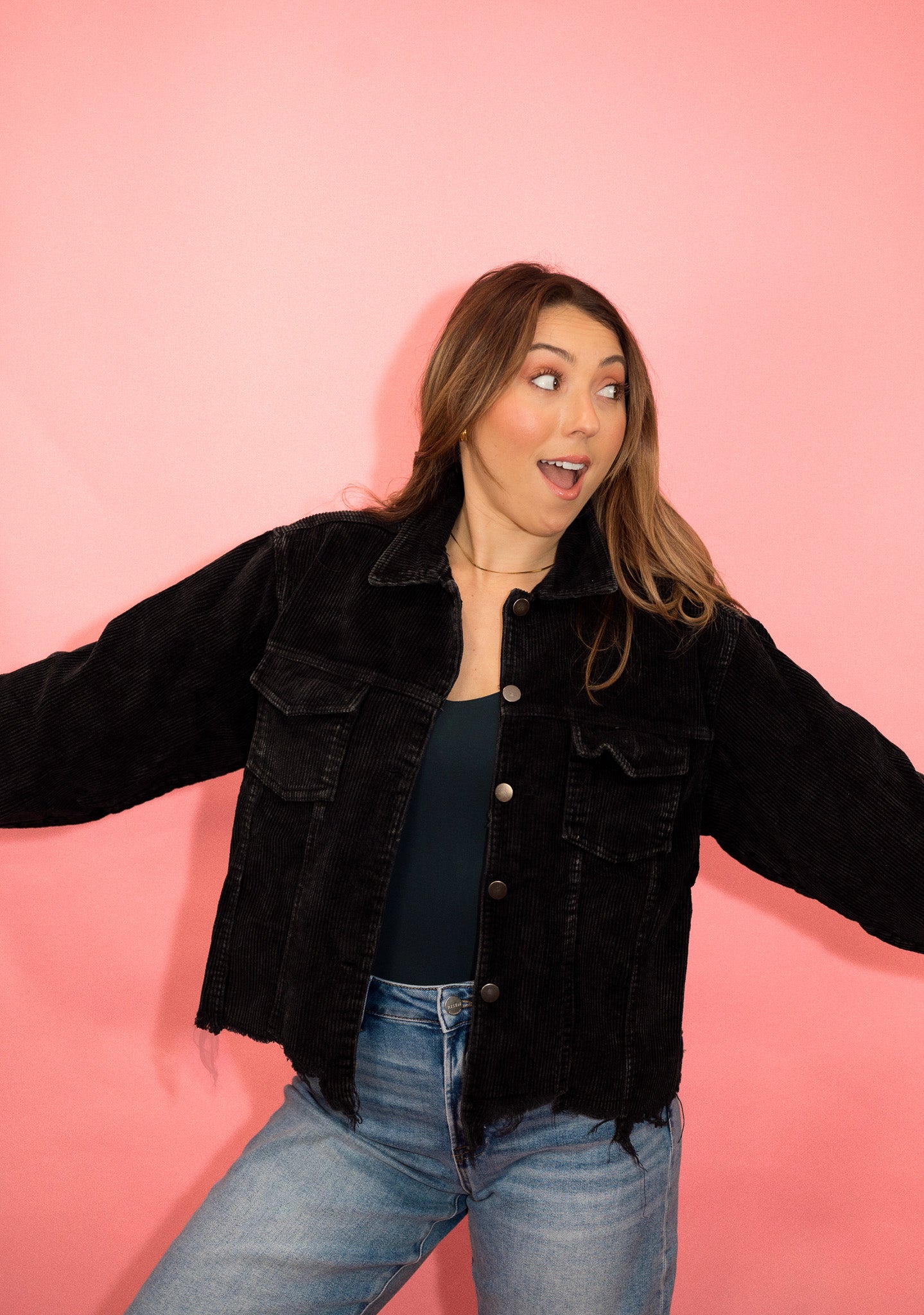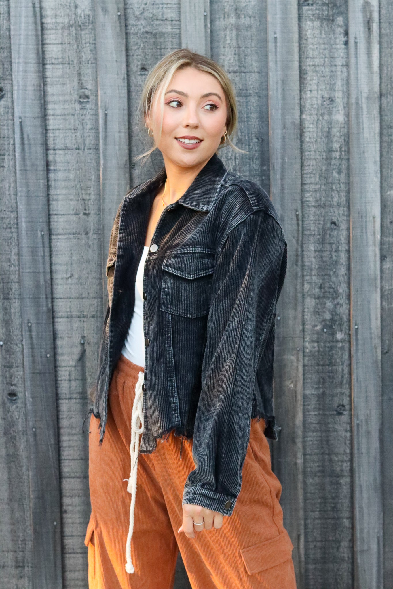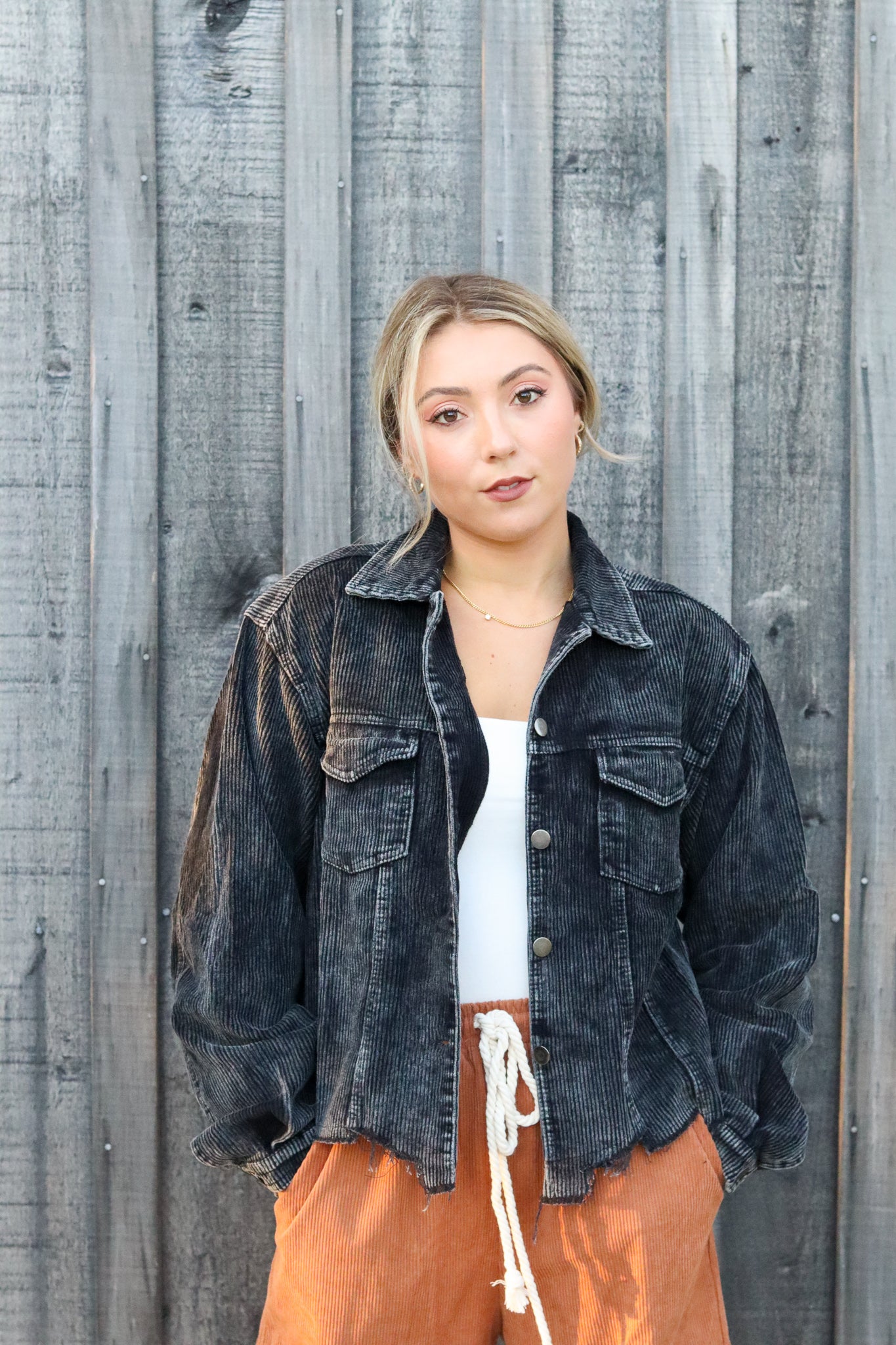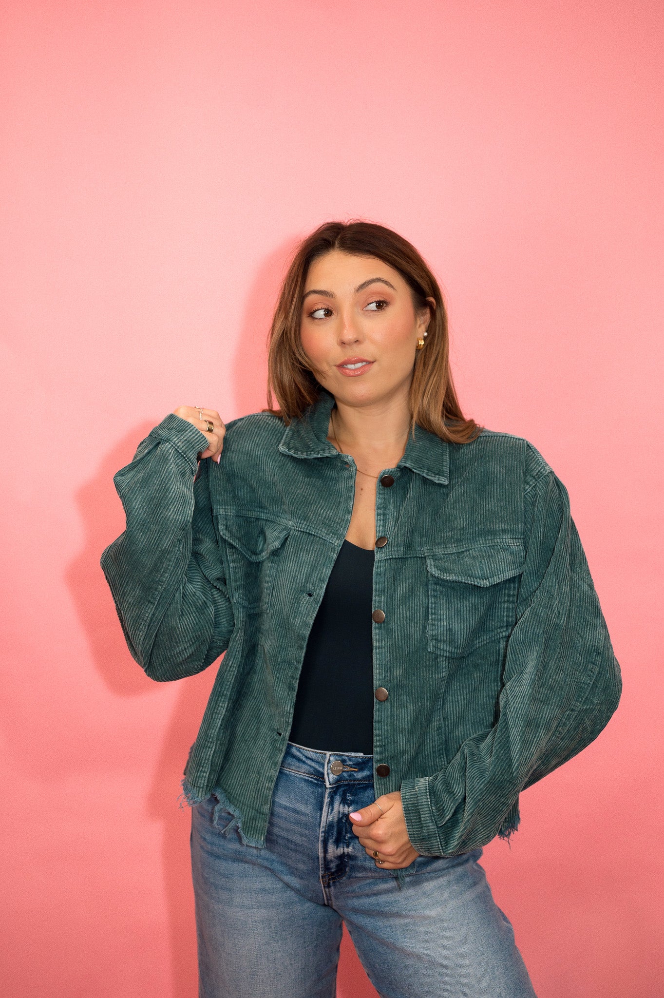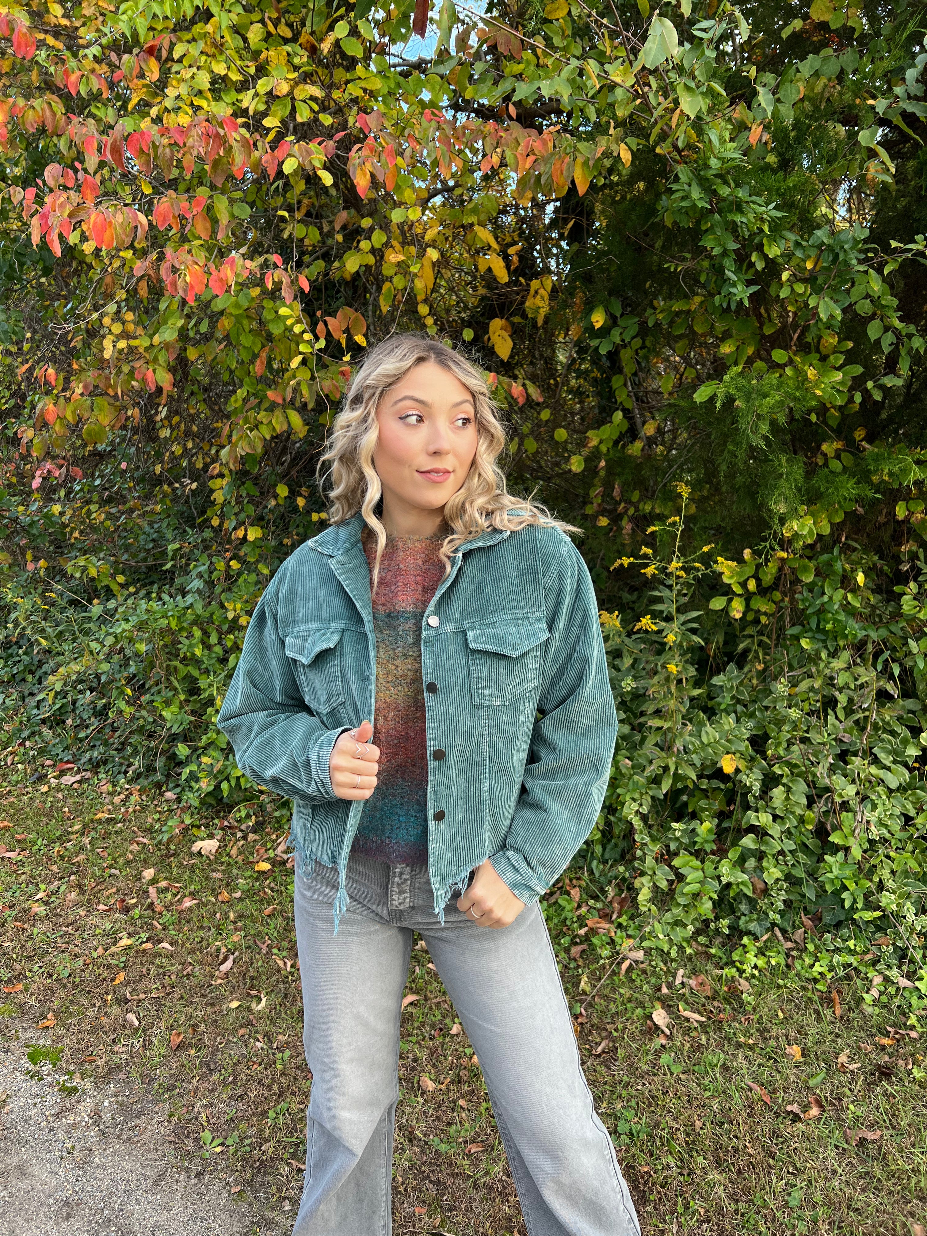 DOORBUSTER: POL Distressed Cotton Corduroy Shacket: Multiple Colors