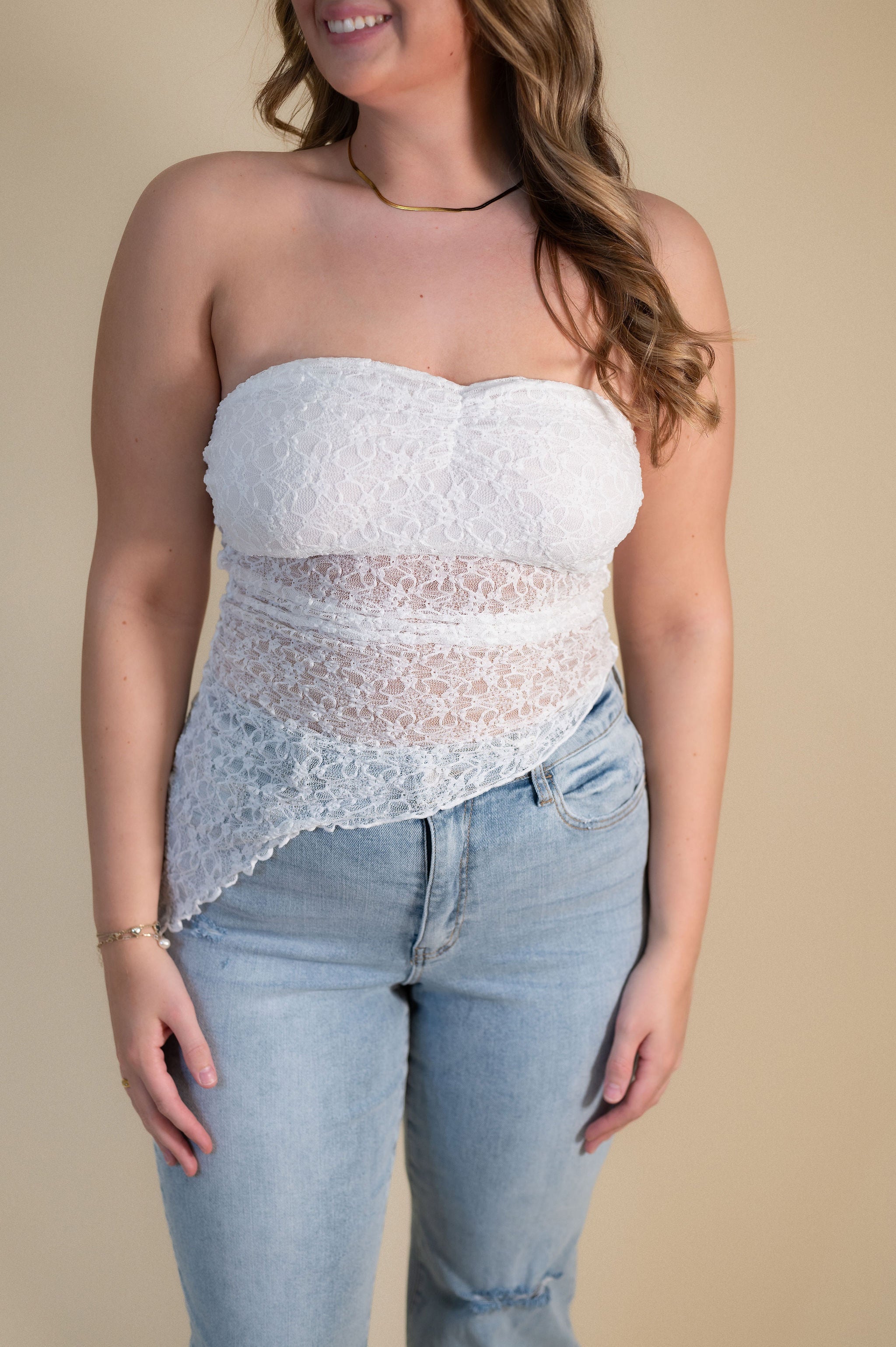 Asymmetrical Mesh Lace Tube Top