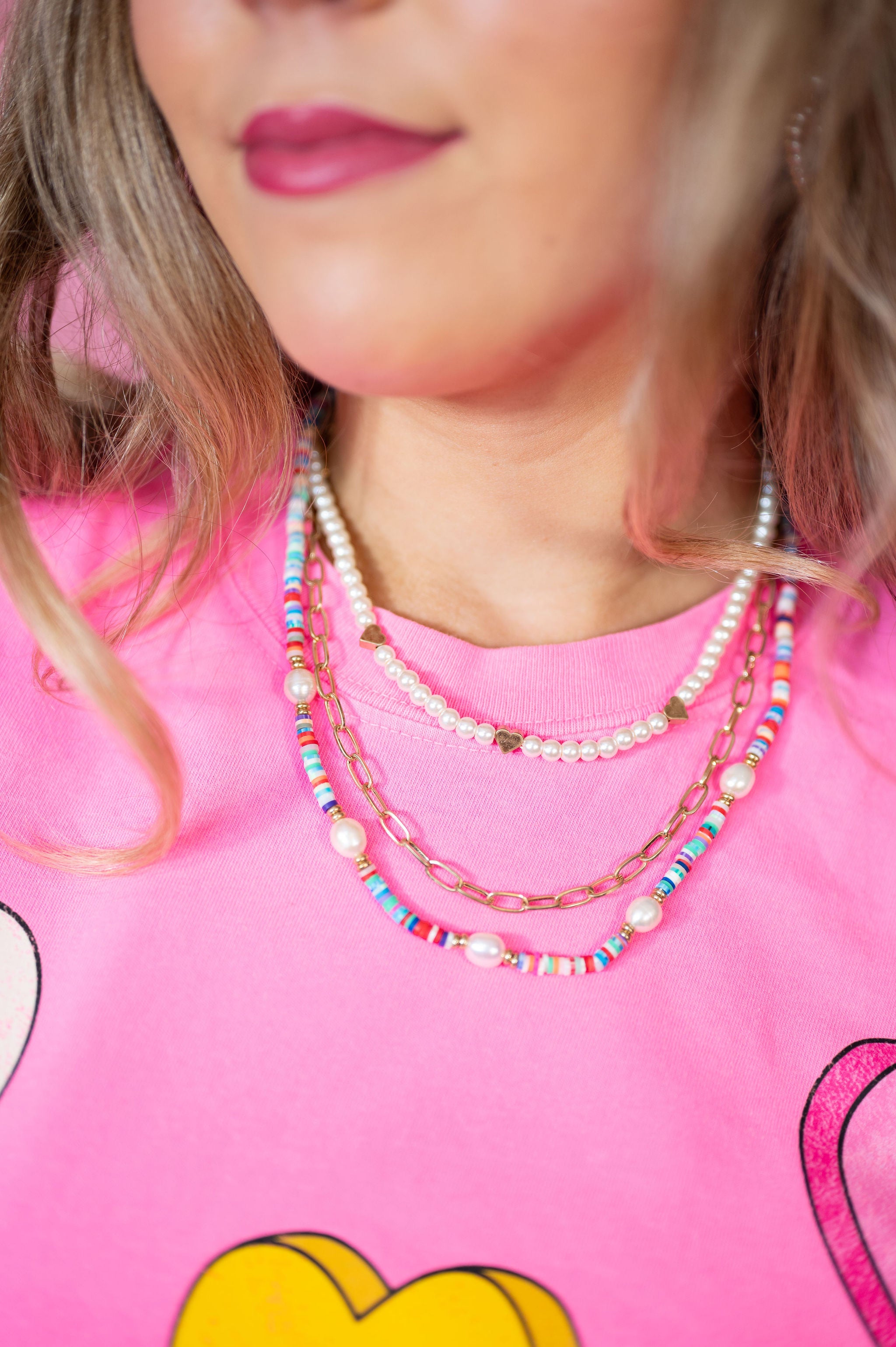 Multi Layered Hearts Necklace with Colorful Rubber Discs