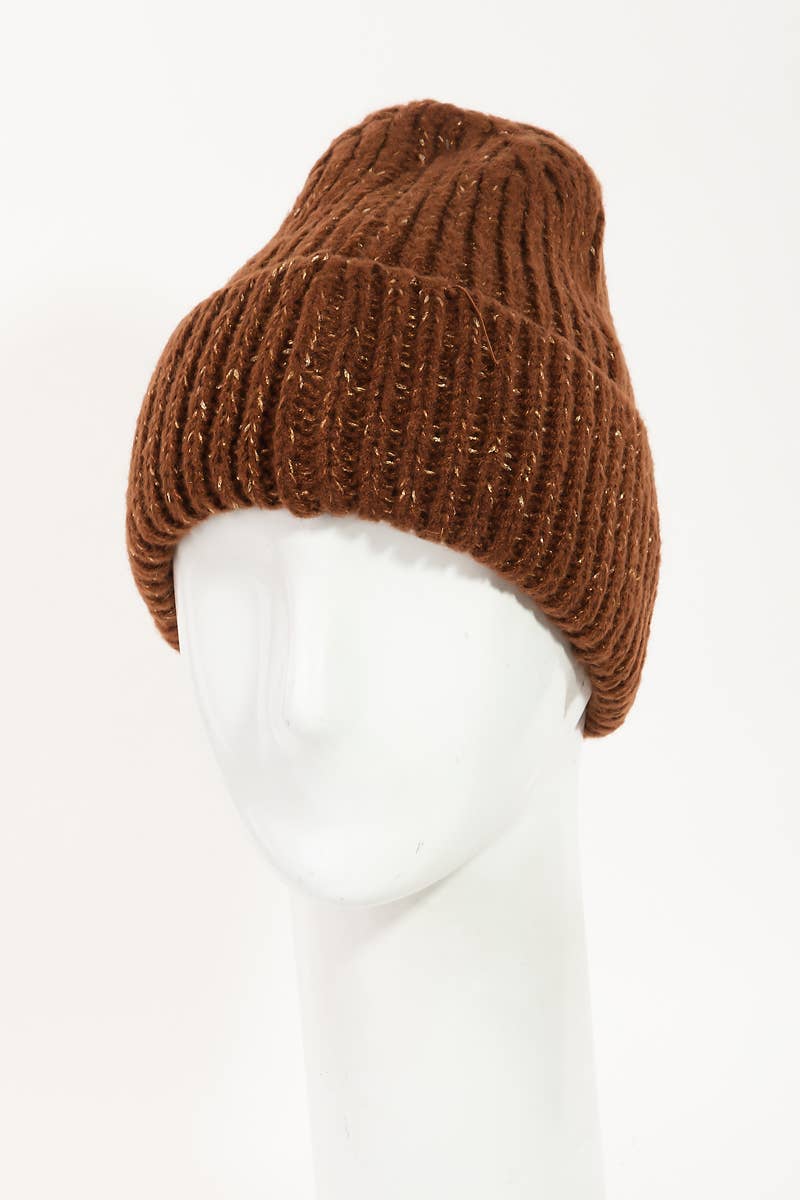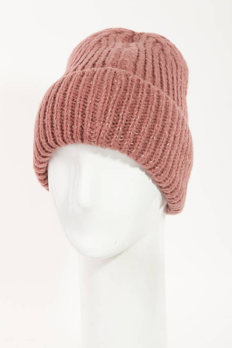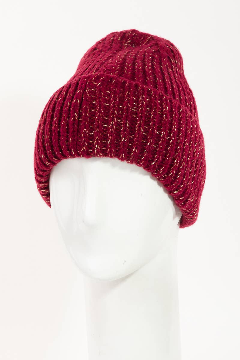 Ribbed Knitted Beanie: Wine