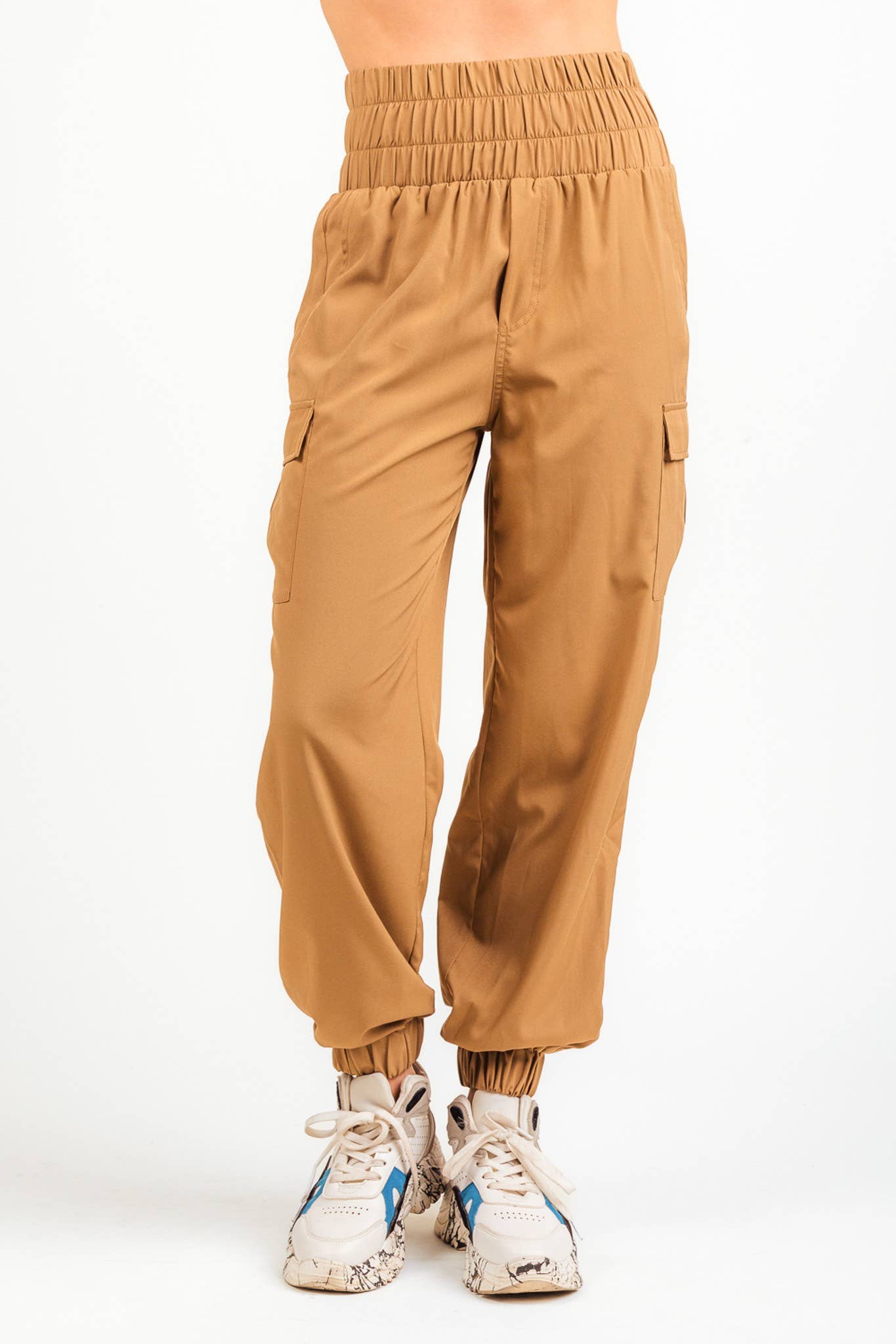 High Waisted Cargo Active Joggers: Light Mocha Taupe