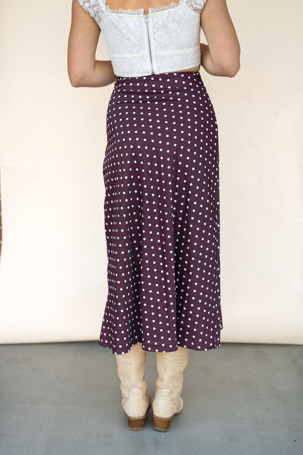 Chocolate Dot Satin Midi Skirt