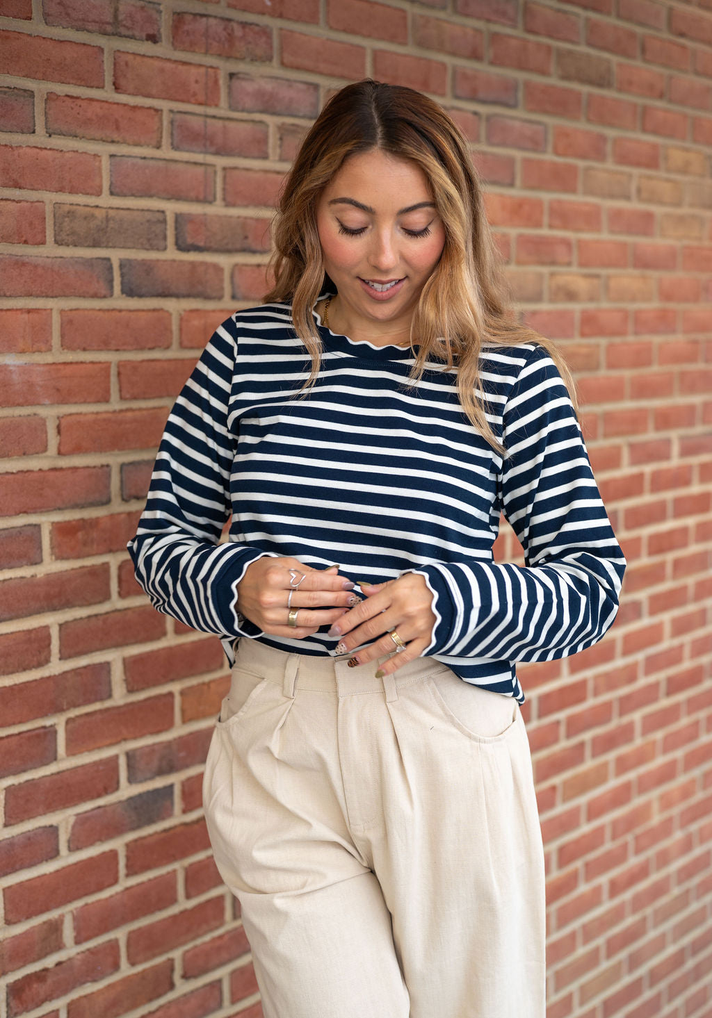 Call Me Navy Scalloped Long Sleeve