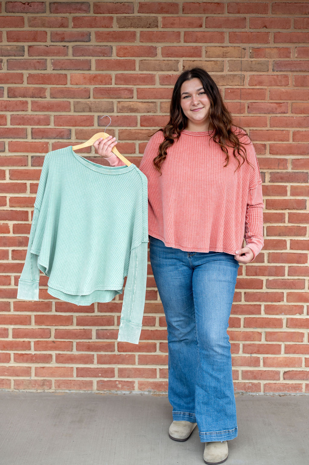 Round Neck Oversized Mineral Wash Waffle Thermal