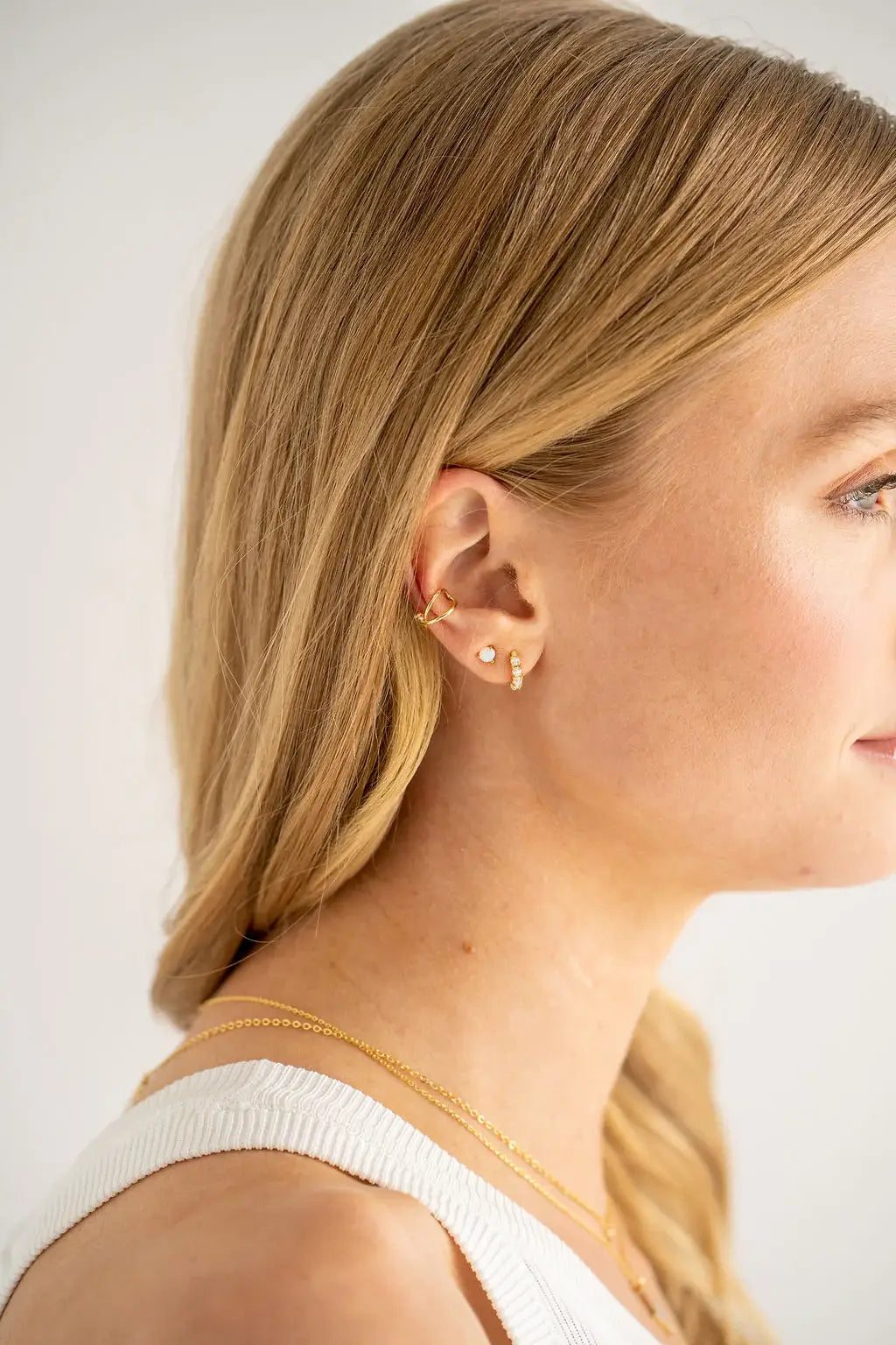 18K Gold Opal Huggies