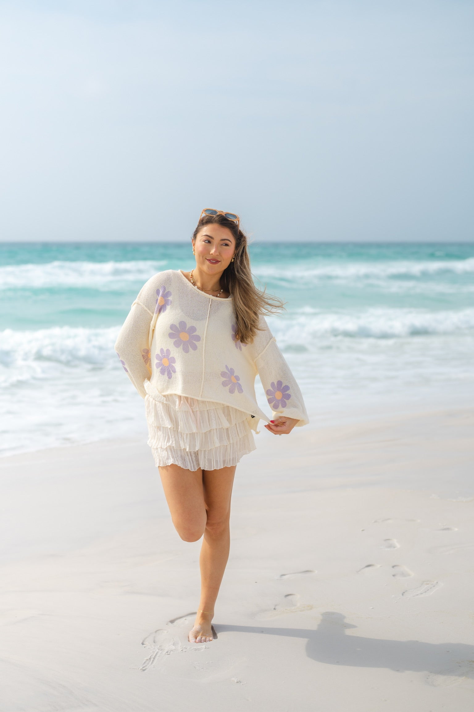 The Daisy Thin Sweater in Ivory is the perfect addition to your wardrobe. With its lightweight and relaxed fit, it's great for layering. The boat neck adds a touch of elegance while the slightly sheer fabric gives a flirty edge. Stay stylish and comfortable in this must-have piece!