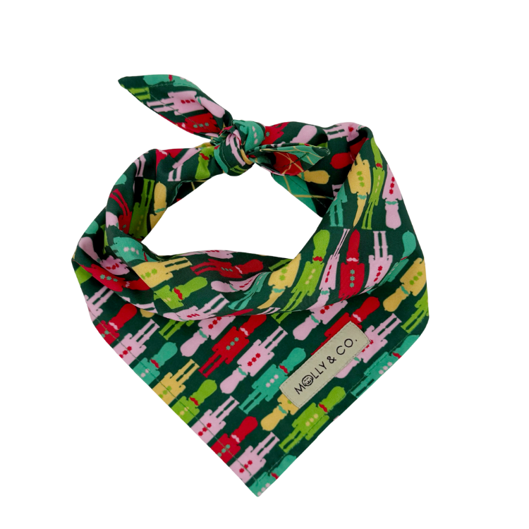 Two festive looks, one instant upgrade. The Evergreen Argyle + Nutcracker Reversible Bandana flips from classic winter argyle to a playful Nutcracker print. Perfect for holiday photos, parties, and cozy cocoa runs. Switch sides for a fresh vibe without changing the outfit.