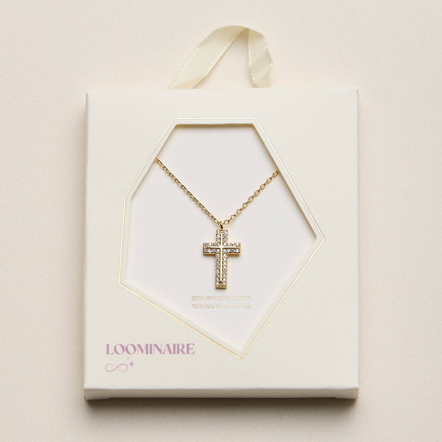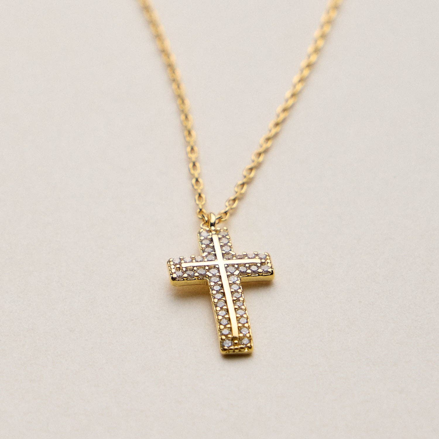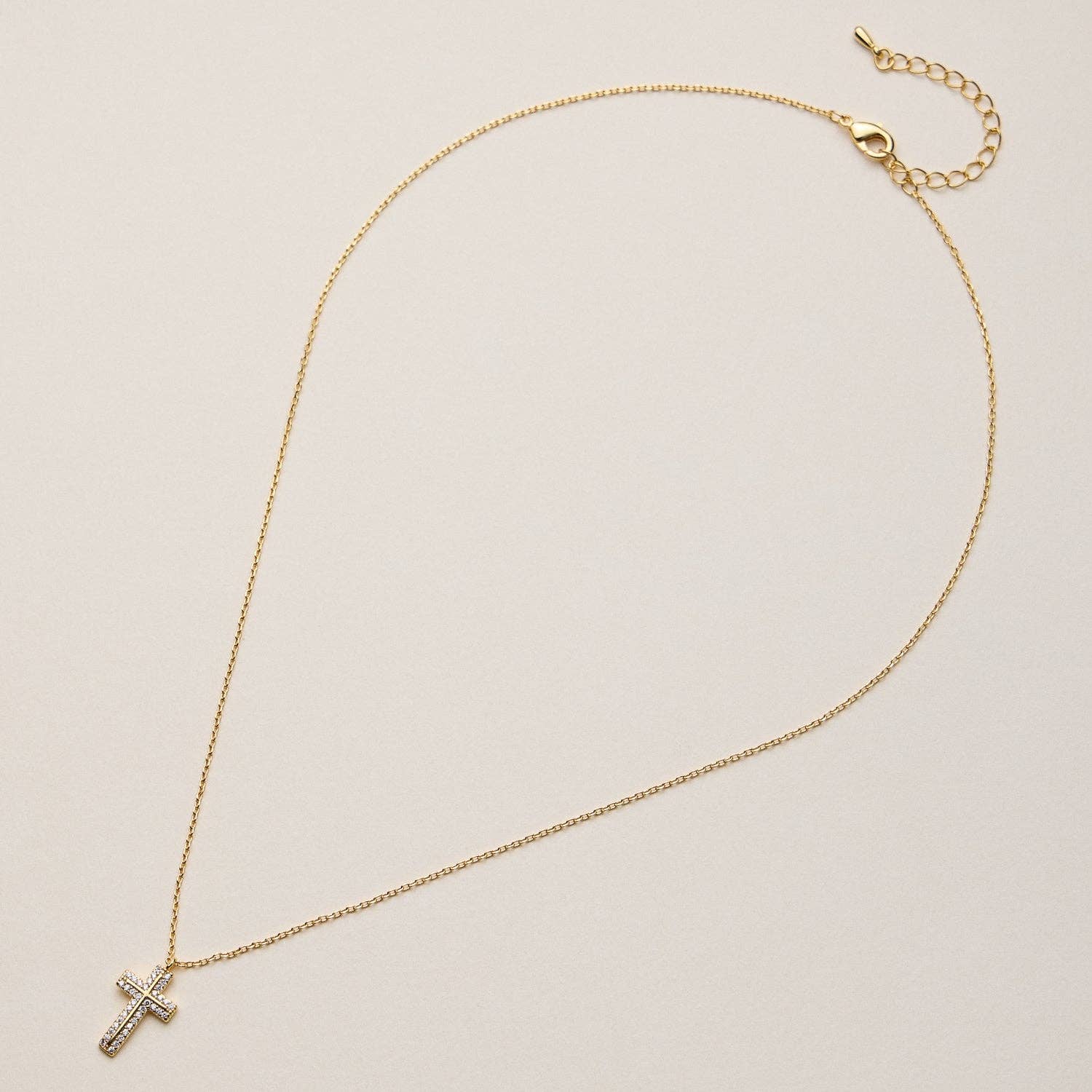 Gold Dipped Pave Cross Pendant Necklace – Sparkling Crystal Charm