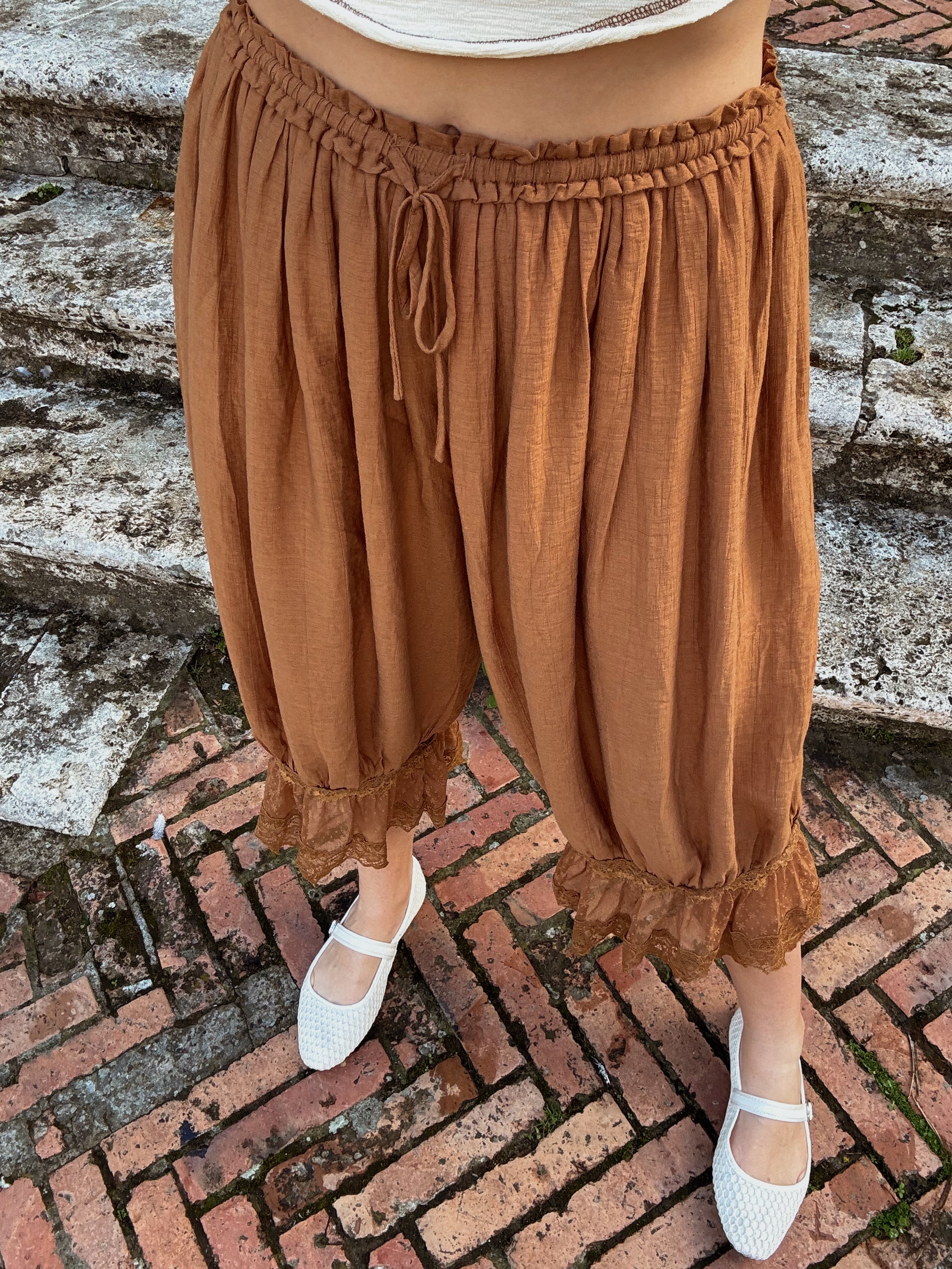 Lace-Trimmed Cropped Bloomer Pants