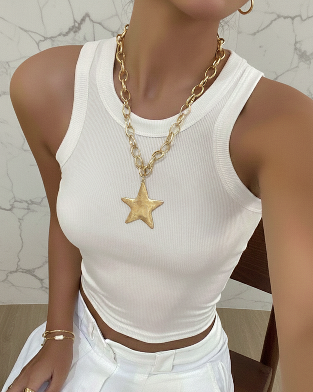 Large Hammered Star Necklace